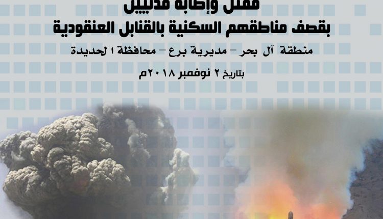 مقتل وإصابة مدنيين بقصف مناطقهم السكنية بالقنابل العنقودية منطقة آل بحر – مديرية برع – محافظة ا لحديدة بتاريخ 2 نوفمبر 2018