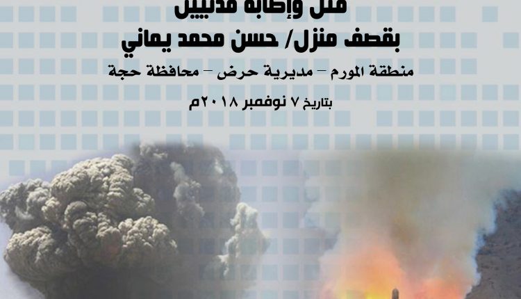 قتل وإصابة مدنيين بقصف منزل/ حسن محمد يماني منطقة المورم – مديرية حرض – محافظة حجة بتاريخ 7 نوفمبر 2018