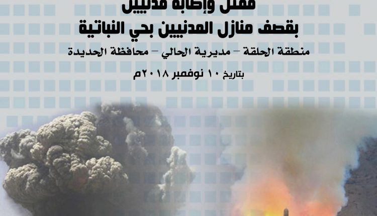 مقتل وإصابة مدنيين بقصف منازل المدنيين بحي النباتية منطقة الحلقة – مديرية الحالي – محافظة الحديدة بتاريخ 10 نوفمبر 2018