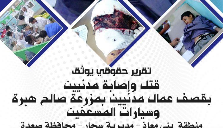 قتل وإصابة مدنيين بقصف عمال مدنيين بمزرعة صالح هبرة وسيارات المسعفين منطقة بني معاذ – مديرية سحار – محافظة صعدة بتاريخ 19 نوفمبر 2018