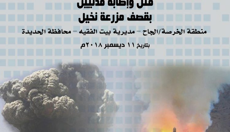 قتل وإصابة مدنيين بقصف مزرعة نخيل منطقة الخرصة/الجاح – مديرية بيت الفقيه – محافظة الحديدة بتاريخ 11 ديسمبر 2018