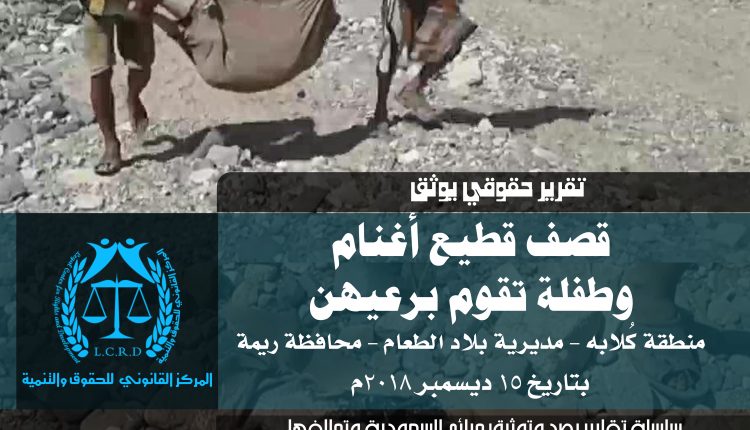 قصف قطيع أغنام وطفلة تقوم برعيهن منطقة كُلابه – مديرية بلاد الطعام – محافظة ريمة بتاريخ 15 ديسمبر 2018