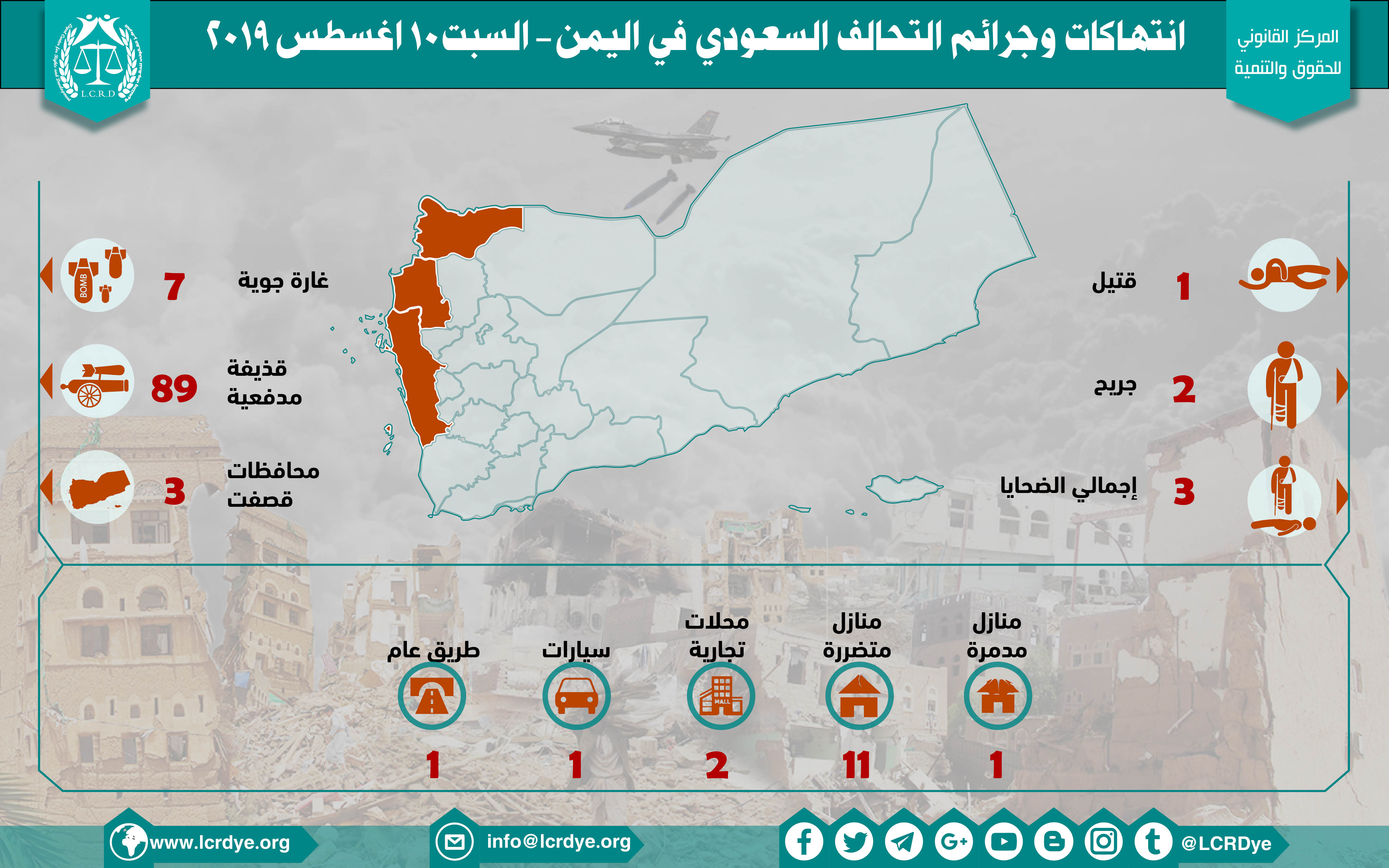 إحصائية أولية لإنتهاكات التحالف السعودي في اليمن 10 اغسطس 2019 Last updated أغسطس 21, 2019 للتحميل : Share FacebookTwitterGoogle+ReddItWhatsAppPinterestالبريد الإلكتروني