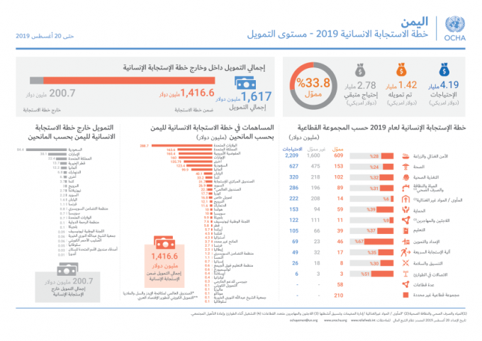 اليمن خطة الاستجابة الانسانية 2019 – مستوى التمويل Last updated أغسطس 24, 2019 انقر الروابط التالية: https://reliefweb.int/report/yemen/yemen-humanitarian-response-plan-2019-funding-status-20-aug-2019-enar https://reliefweb.int/sites/reliefweb.int/files/resources/YHF_funding_status_20082019%20Ar.pdf انفوجرافك دزلي-اليمن Share FacebookTwitterGoogle+ReddItWhatsAppPinterestالبريد الإلكتروني
