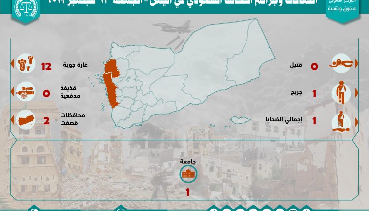 إحصائية أولية لإنتهاكات التحالف السعودي في اليمن 13 سبتمبر 2019 Last updated سبتمبر 22, 2019 للتحميل : التحالف السعوديالضحايا المدنيين في اليمنالمركز القانوني للحقوق والتنميةاليمنرصد وتوثيق انتهاكات التحالف السعوديعاصفة الحزمغارات التحالف السعودي على اليمن Share FacebookTwitterGoogle+ReddItWhatsAppPinterestالبريد الإلكتروني