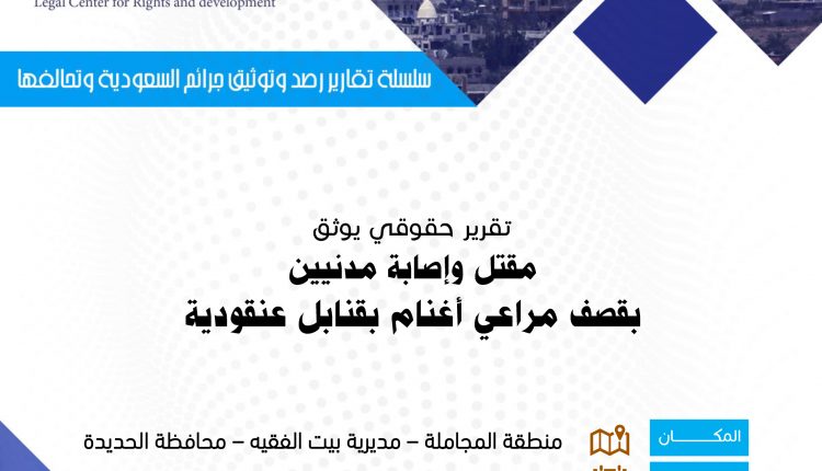 مقتل وإصابة مدنيين بقصف مراعي أغنام بقنابل عنقودية منطقة المجاملة – مديرية بيت الفقيه – محافظة الحديدة – الخميس 7 مارس 2019
