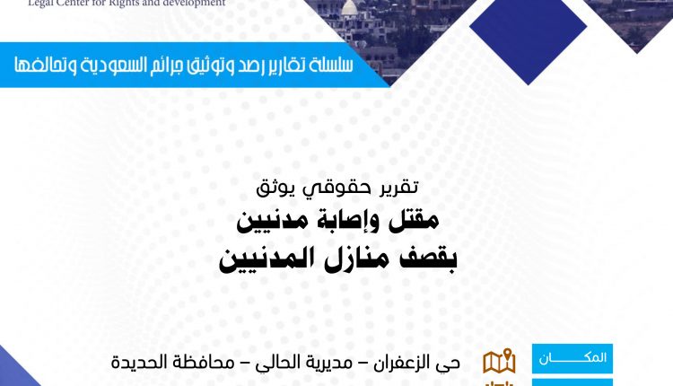 مقتل وإصابة مدنيين بقصف منازل المدنيين حي الزعفران – مديرية الحالي – محافظة الحديدة – الأحد 17 مارس 2019
