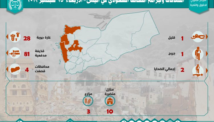 إحصائية أولية لإنتهاكات التحالف السعودي في اليمن 25 سبتمبر 2019 Last updated سبتمبر 29, 2019 للتحميل : استهداف البنى التحتيةاستهداف المنشآت الاقتصاديةالتحالف السعوديالمركز القانوني للحقوق والتنميةاليمنجرائم ضد الانسانيةرصد وتوثيق انتهاكات التحالف السعوديعاصفة الحزم Share FacebookTwitterGoogle+ReddItWhatsAppPinterestالبريد الإلكتروني