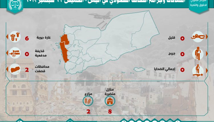 إحصائية أولية لإنتهاكات التحالف السعودي في اليمن 26 سبتمبر 2019 Last updated سبتمبر 29, 2019 للتحميل : استهداف المدنيينالمركز القانوني للحقوق والتنميةاليمنجرائم ضد الانسانيةرصد وتوثيق انتهاكات التحالف السعوديعاصفة الحزمغارات التحالف السعودي على اليمن Share FacebookTwitterGoogle+ReddItWhatsAppPinterestالبريد الإلكتروني