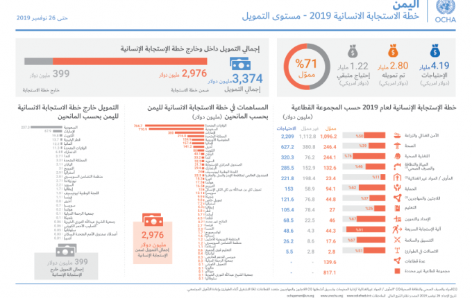 اليمن- خطة الاستجابة الانسانية 2019 – مستوى التمويل On نوفمبر 27, 2019 https://reliefweb.int/sites/reliefweb.int/files/resources/YHF_funding_status_26112019%20Ar.pdf اليمن- خطة الاستجابة الانسانية 2019 - مستوى التمويلانفوجرافك دولي Share FacebookTwitterGoogle+ReddItWhatsAppPinterestالبريد الإلكتروني