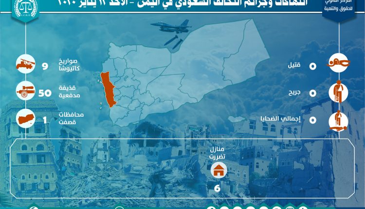 إحصائية أولية لإنتهاكات التحالف السعودي في اليمن – الأحد 12 يناير 2020