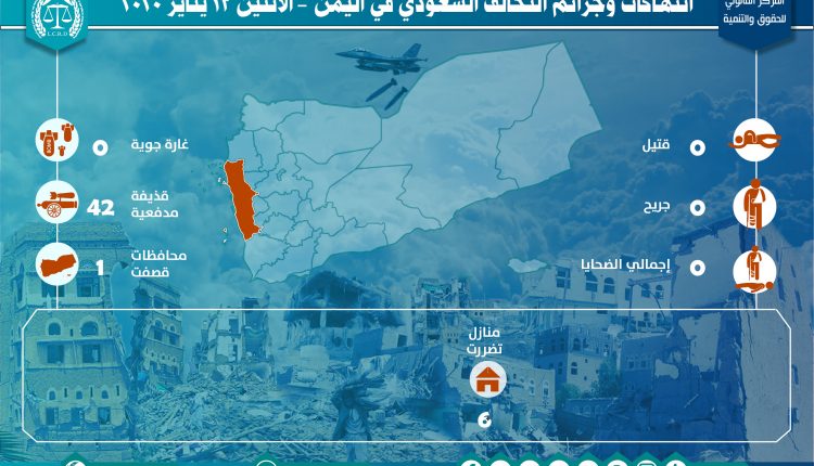 إحصائية أولية لإنتهاكات التحالف السعودي في اليمن – الاثنين 13 يناير 2020 Last updated يوليو 25, 2020 إحصائية أولية لإنتهاكات التحالف السعودي في اليمن – الاثنين 13 يناير 2020 تحميل التقرير لمزيد من التفاصيل Share FacebookTwitterGoogle+ReddItWhatsAppPinterestالبريد الإلكتروني