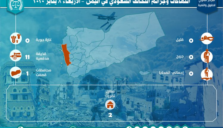 إحصائية أولية لإنتهاكات التحالف السعودي في اليمن – الأربعاء 8 يناير 2020 Last updated يوليو 25, 2020 إحصائية أولية لإنتهاكات التحالف السعودي في اليمن – الأربعاء 8 يناير 2020 تحميل التقرير لمزيد من التفاصيل Share FacebookTwitterGoogle+ReddItWhatsAppPinterestالبريد الإلكتروني