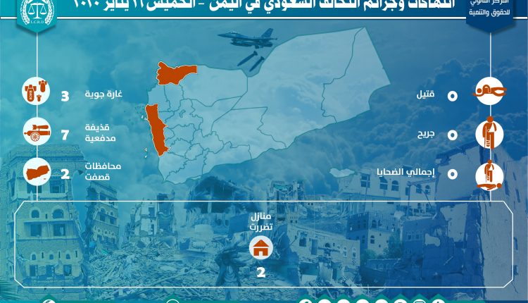إحصائية أولية لإنتهاكات التحالف السعودي في اليمن – الخميس 16 يناير 2020 Last updated يوليو 25, 2020 إحصائية أولية لإنتهاكات التحالف السعودي في اليمن – الخميس 16 يناير 2020 تحميل التقرير لمزيد من التفاصيل Share FacebookTwitterGoogle+ReddItWhatsAppPinterestالبريد الإلكتروني