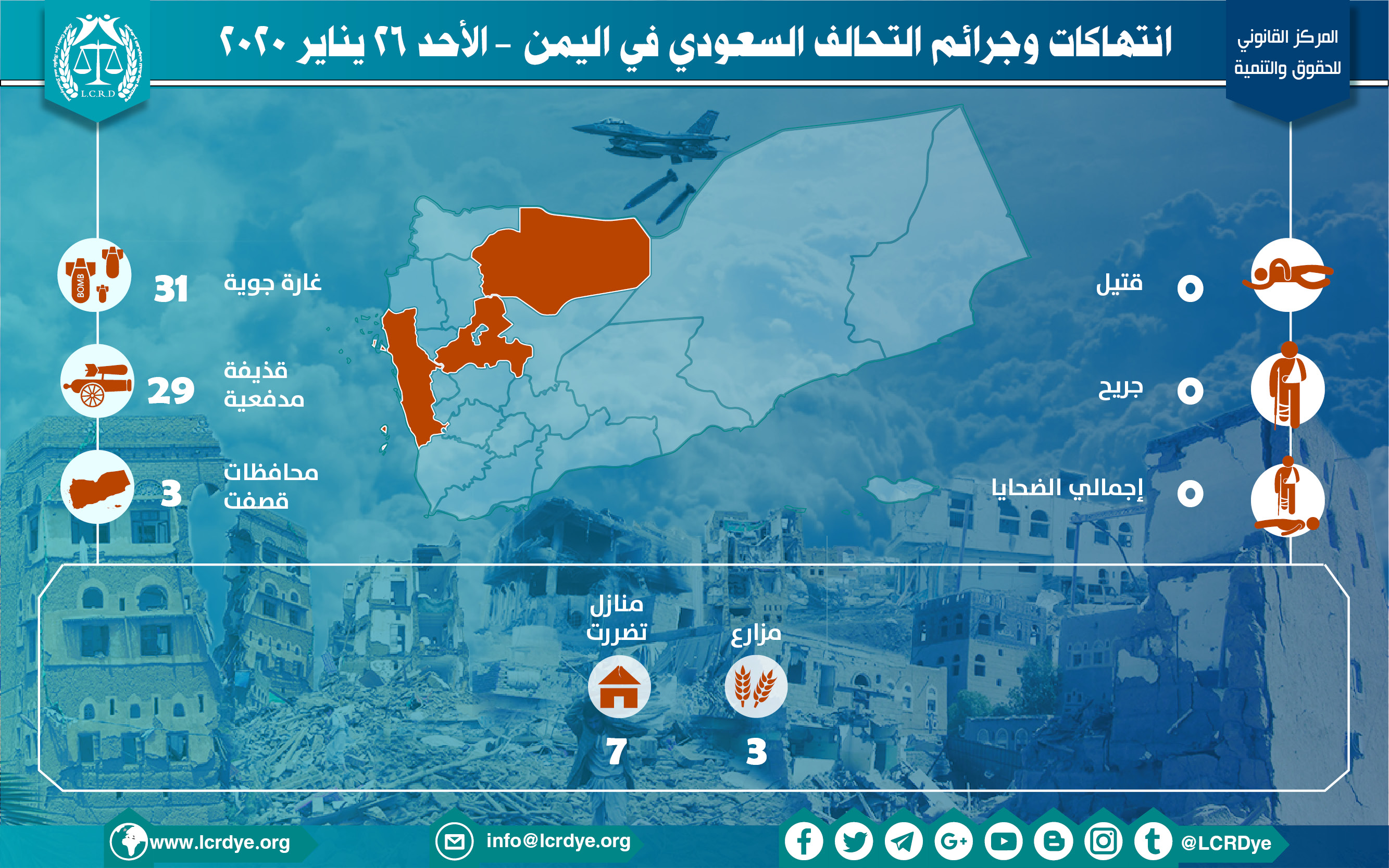 إحصائية أولية لإنتهاكات التحالف السعودي في اليمن – الأحد 26 يناير 2020 Last updated يوليو 25, 2020 إحصائية أولية لإنتهاكات التحالف السعودي في اليمن – الأحد 26 يناير 2020 تحميل التقرير لمزيد من التفاصيل Share FacebookTwitterGoogle+ReddItWhatsAppPinterestالبريد الإلكتروني