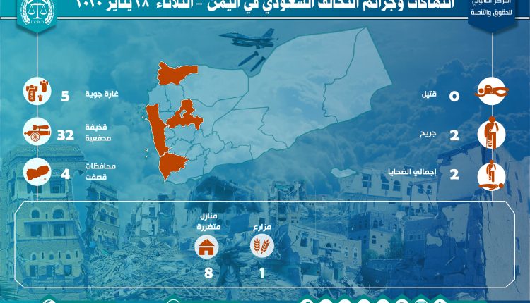إحصائية أولية لإنتهاكات التحالف السعودي في اليمن – الثلاثاء 28 يناير 2020 Last updated يوليو 25, 2020 تحميل التقرير لمزيد من التفاصيل استهداف المدنييناستهداف المنشآت الاقتصاديةاستهداف المنشآت المدنيةالمركز القانوني للحقوق والتنميةاليمنرصد وتوثيق انتهاكات التحالف السعوديعاصفة الحزمغارات التحالف السعودي على اليمن Share FacebookTwitterGoogle+ReddItWhatsAppPinterestالبريد الإلكتروني