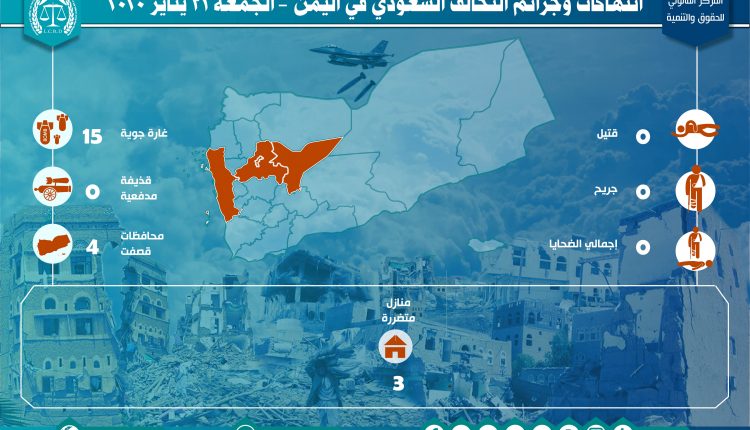 إحصائية أولية لإنتهاكات التحالف السعودي في اليمن – الجمعة 31 يناير 2020 Last updated فبراير 26, 2020 تحميل التقرير لمزيد من التفاصيل التحالف السعوديالضحايا المدنيين في اليمنالمركز القانوني للحقوق والتنميةاليمنرصد وتوثيق انتهاكات التحالف السعودي Share FacebookTwitterGoogle+ReddItWhatsAppPinterestالبريد الإلكتروني
