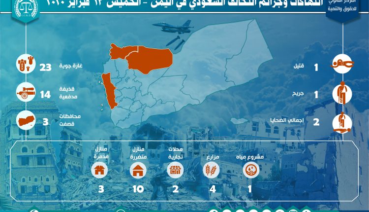 إحصائية أولية لإنتهاكات التحالف السعودي في اليمن – الجمعة 13 فبراير 2020 Last updated مارس 1, 2020 تحميل التقرير لمزيد من التفاصيل المركز القانوني للحقوق والتنميةاليمنرصد وتوثيق انتهاكات التحالف السعوديعاصفة الحزمغارات التحالف السعودي على اليمن Share FacebookTwitterGoogle+ReddItWhatsAppPinterestالبريد الإلكتروني