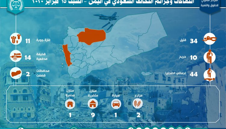 إحصائية أولية لإنتهاكات التحالف السعودي في اليمن – الأحد 15 فبراير 2020 Last updated مارس 1, 2020 تحميل التقرير لمزيد من التفاصيل استهداف البنى التحتيةالمركز القانوني للحقوق والتنميةرصد وتوثيق انتهاكات التحالف السعوديعاصفة الحزمغارات التحالف السعودي على اليمن Share FacebookTwitterGoogle+ReddItWhatsAppPinterestالبريد الإلكتروني
