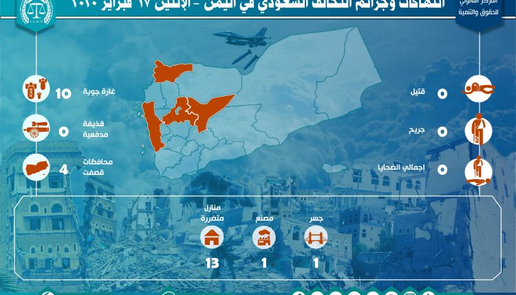 إحصائية أولية لإنتهاكات التحالف السعودي في اليمن – الثلاثاء 17 فبراير 2020 Last updated مارس 1, 2020 تحميل التقرير لمزيد من التفاصيل استهداف المنشآت المدنيةالضحايا المدنيين في اليمناليمنرصد وتوثيق انتهاكات التحالف السعوديعاصفة الحزمغارات التحالف السعودي على اليمن Share FacebookTwitterGoogle+ReddItWhatsAppPinterestالبريد الإلكتروني