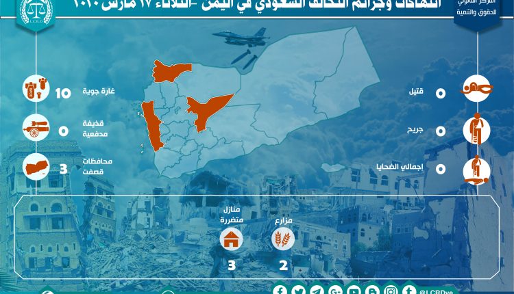إحصائية أولية لإنتهاكات التحالف السعودي في اليمن –الثلاثاء 17 مارس 2020 Last updated مارس 18, 2020 تحميل التقرير لمزيد من التفاصيل استهداف المنشآت المدنيةالتحالف السعوديالضحايا المدنيين في اليمنالمركز القانوني للحقوق والتنميةاليمنانتهاك التحالف السعودي لقوانين الحربرصد وتوثيق انتهاكات التحالف السعودي Share FacebookTwitterGoogle+ReddItWhatsAppPinterestالبريد الإلكتروني