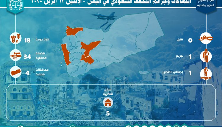 إحصائية أولية لإنتهاكات التحالف السعودي في اليمن – الإثنين 13 أبريل 2020 Last updated أبريل 19, 2020 تحميل التقرير لمزيد من التفاصيل استهداف المنشآت المدنيةالمركز القانوني للحقوق والتنميةاليمنرصد وتوثيق انتهاكات التحالف السعوديعاصفة الحزمغارات التحالف السعودي على اليمن Share FacebookTwitterGoogle+ReddItWhatsAppPinterestالبريد الإلكتروني