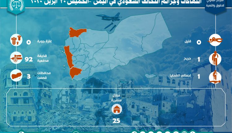 إحصائية أولية لإنتهاكات التحالف السعودي في اليمن – الخميس 30 أبريل 2020 Last updated مايو 3, 2020 تحميل التقرير لمزيد من التفاصيل استهداف المدنيينالضحايا المدنيين في اليمنالمركز القانوني للحقوق والتنميةاليمنرصد وتوثيق انتهاكات التحالف السعوديعاصفة الحزمغارات التحالف السعودي على اليمن Share FacebookTwitterGoogle+ReddItWhatsAppPinterestالبريد الإلكتروني