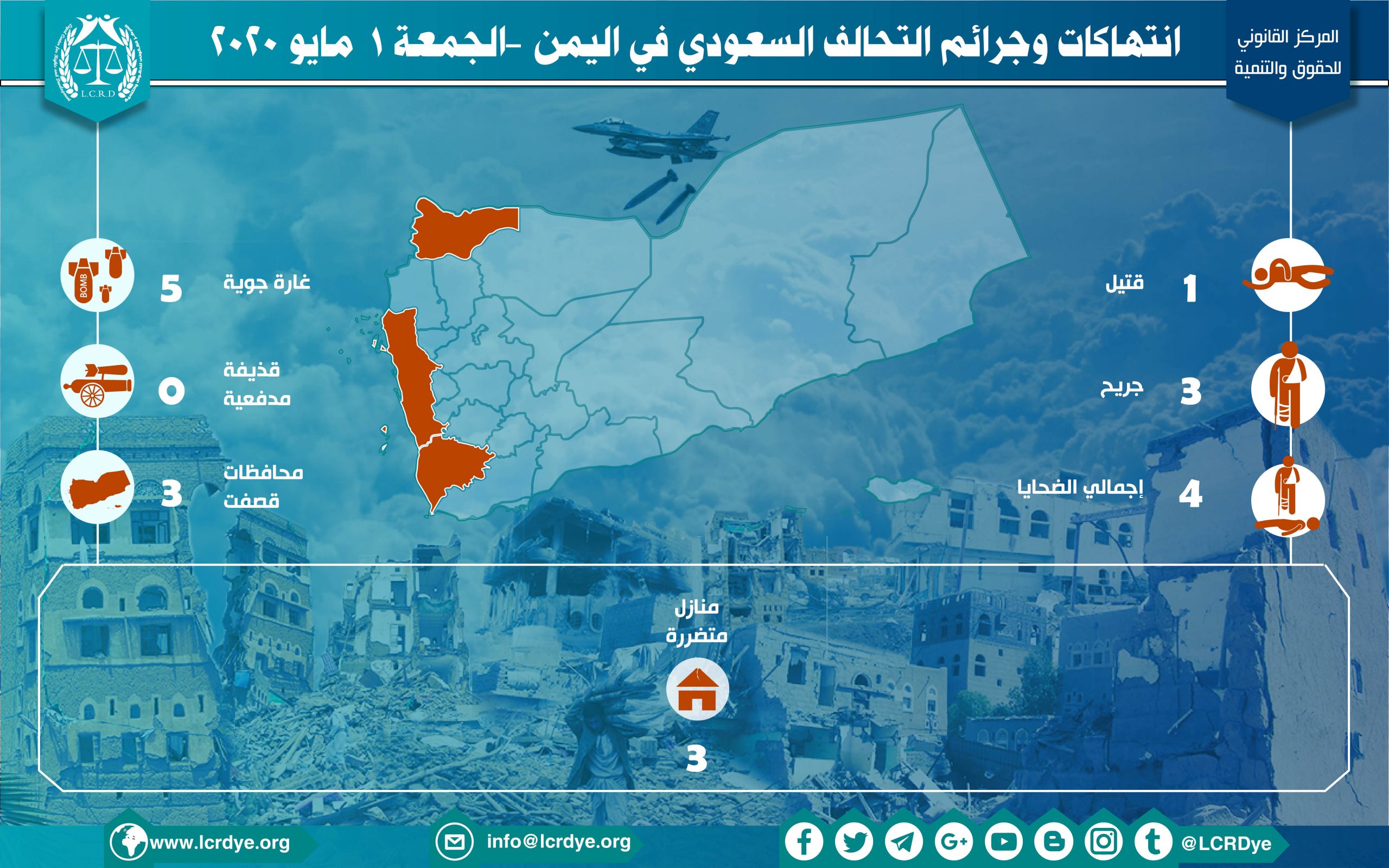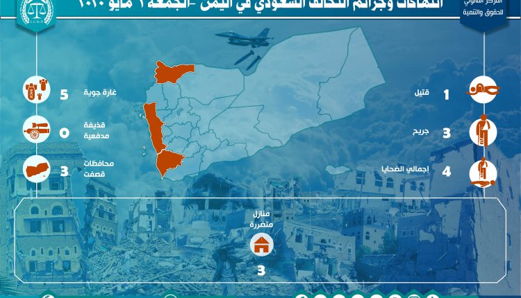 إحصائية أولية لإنتهاكات التحالف السعودي في اليمن – الجمعة 1 مايو 2020 Last updated مايو 3, 2020 تحميل التقرير لمزيد من التفاصيل التحالف السعوديالضحايا المدنيين في اليمنرصد وتوثيق انتهاكات التحالف السعوديغارات التحالف السعودي على اليمن Share FacebookTwitterGoogle+ReddItWhatsAppPinterestالبريد الإلكتروني