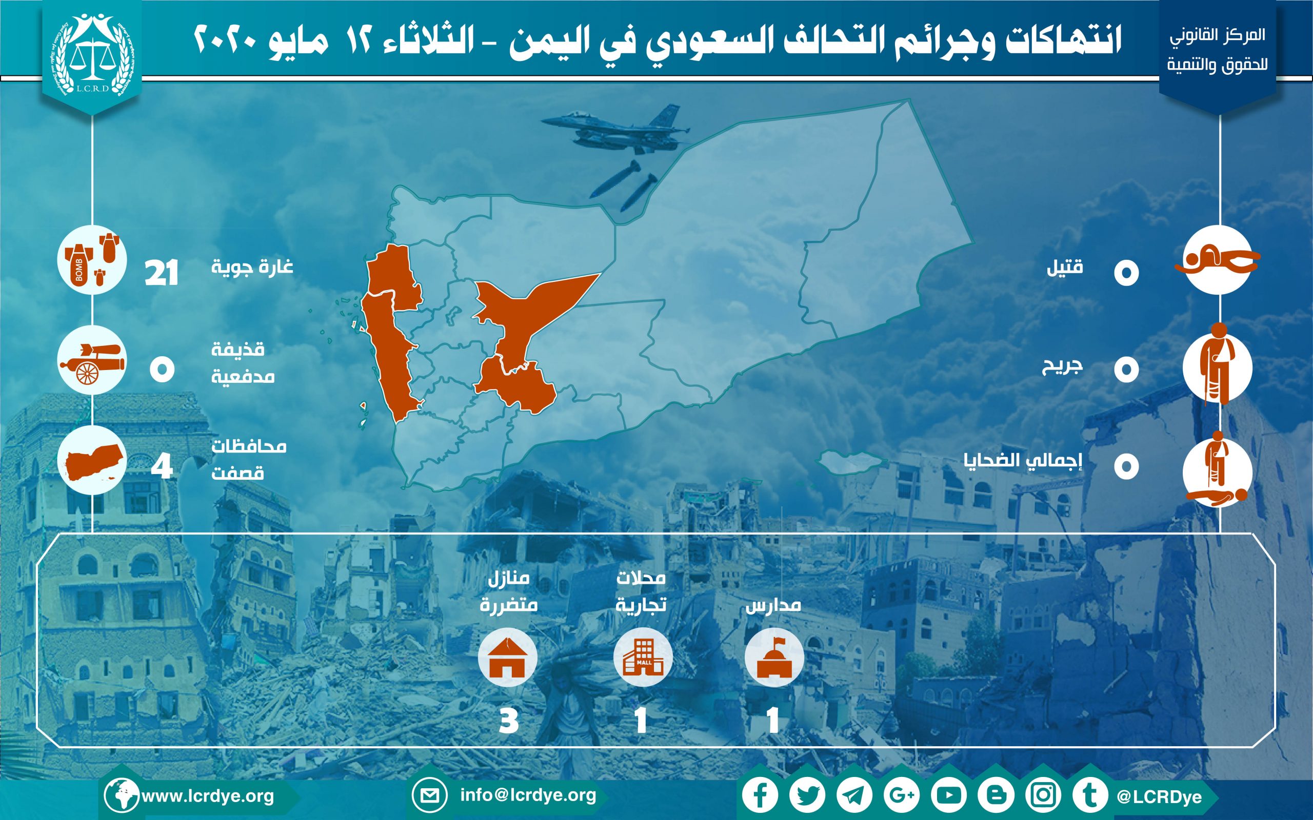 • إحصائية أولية لإنتهاكات التحالف السعودي في اليمن – الثلاثاء 12 مايو 2020