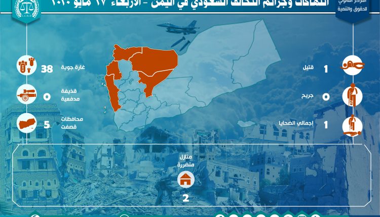 إحصائية أولية لإنتهاكات التحالف السعودي في اليمن – الأربعاء 27 مايو 2020 Last updated يونيو 3, 2020 تحميل التقرير لمزيد من التفاصيل استهداف المنشآت المدنيةالمركز القانوني للحقوق والتنميةاليمنرصد وتوثيق انتهاكات التحالف السعوديغارات التحالف السعودي على اليمن Share FacebookTwitterGoogle+ReddItWhatsAppPinterestالبريد الإلكتروني