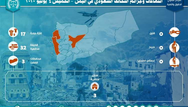 إحصائية أولية لإنتهاكات التحالف السعودي في اليمن – الخميس 4 يوينو 2020 Last updated يونيو 17, 2020 التحالف السعوديالمركز القانوني للحقوق والتنميةاليمنعاصفة الحزم Share FacebookTwitterGoogle+ReddItWhatsAppPinterestالبريد الإلكتروني
