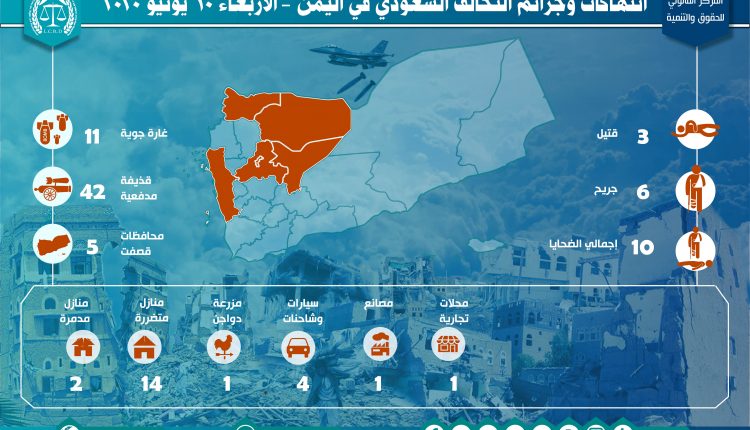 إحصائية أولية لإنتهاكات التحالف السعودي في اليمن – الاربعاء 10 يوينو 2020 On يونيو 16, 2020 للتحميل التحالف السعوديالمركز القانوني للحقوق والتنميةاليمن Share FacebookTwitterGoogle+ReddItWhatsAppPinterestالبريد الإلكتروني