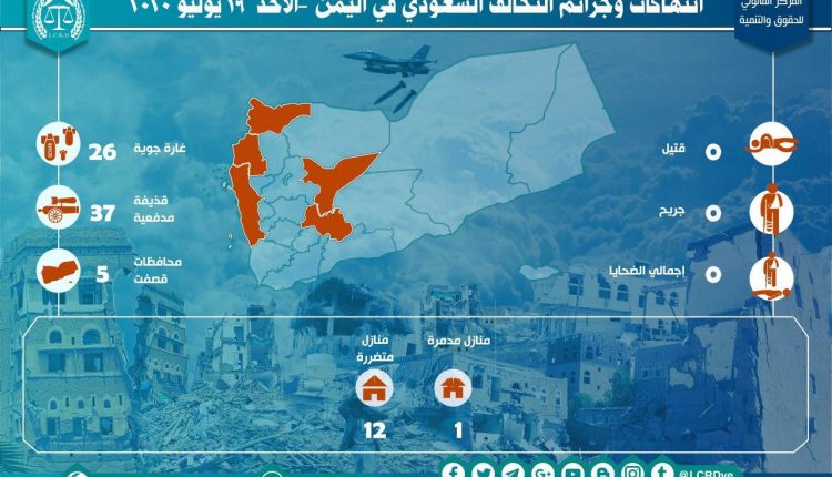 إحصائية أولية لإنتهاكات التحالف السعودي في اليمن – الأحد 19 يوليو 2020 Last updated نوفمبر 28, 2020 للتحميل المركز القانوني للحقوق والتنميةاليمنعاصفة الحزمغارات التحالف السعودي على اليمن Share FacebookTwitterGoogle+ReddItWhatsAppPinterestالبريد الإلكتروني