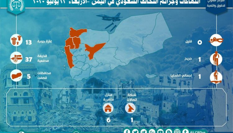 إحصائية أولية لإنتهاكات التحالف السعودي في اليمن – الأربعاء 22 يوليو 2020 Last updated نوفمبر 28, 2020 للتحميل استهداف المنشآت المدنيةالمركز القانوني للحقوق والتنميةاليمنرصد وتوثيق انتهاكات التحالف السعوديعاصفة الحزمغارات التحالف السعودي على اليمن Share FacebookTwitterGoogle+ReddItWhatsAppPinterestالبريد الإلكتروني