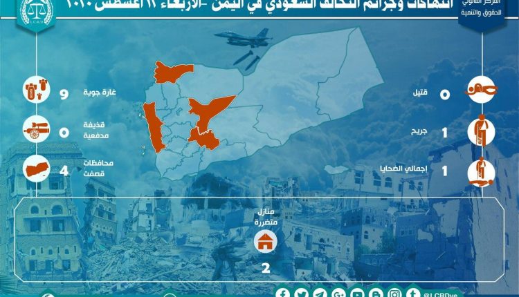 إحصائية أولية لإنتهاكات التحالف السعودي في اليمن – الأربعاء 12 اغسطس 2020 Last updated نوفمبر 29, 2020 للتحميل التحالف السعوديالمركز القانوني للحقوق والتنميةاليمنرصد وتوثيق انتهاكات التحالف السعودي Share FacebookTwitterGoogle+ReddItWhatsAppPinterestالبريد الإلكتروني