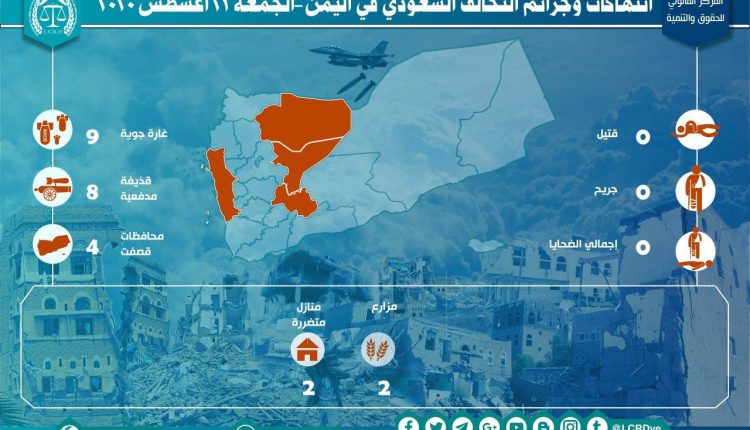 إحصائية أولية لإنتهاكات التحالف السعودي في اليمن – الجمعة 21 اغسطس 2020