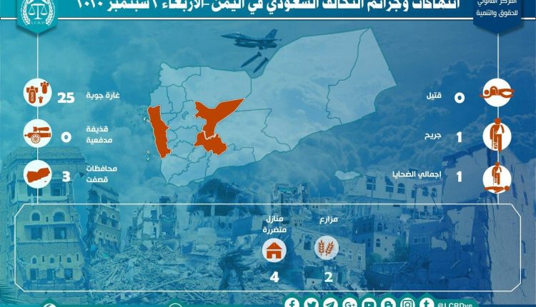إحصائية أولية لإنتهاكات التحالف السعودي في اليمن – الأريعاء 2 سبتمبر 2020 Last updated نوفمبر 29, 2020 للتحميل الضحايا المدنيين في اليمنالمركز القانوني للحقوق والتنميةاليمنرصد وتوثيق انتهاكات التحالف السعودي Share FacebookTwitterGoogle+ReddItWhatsAppPinterestالبريد الإلكتروني