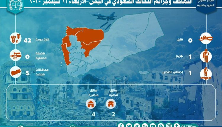إحصائية أولية لإنتهاكات التحالف السعودي في اليمن – الأربعاء 16 سبتمبر 2020 Last updated نوفمبر 30, 2020 للتحميل الضحايا المدنيين في اليمنالمركز القانوني للحقوق والتنميةاليمنرصد وتوثيق انتهاكات التحالف السعودي Share FacebookTwitterGoogle+ReddItWhatsAppPinterestالبريد الإلكتروني