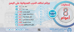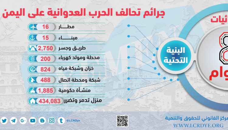 احصائيات المنشآت في البنية التحتية نتيجة الغارات التي تشنها قوات التحالف السعودي خلال 8 أعوام منذ بداية العدوان على اليمن On مايو 28, 2023 Share FacebookTwitterGoogle+ReddItWhatsAppPinterestالبريد الإلكتروني