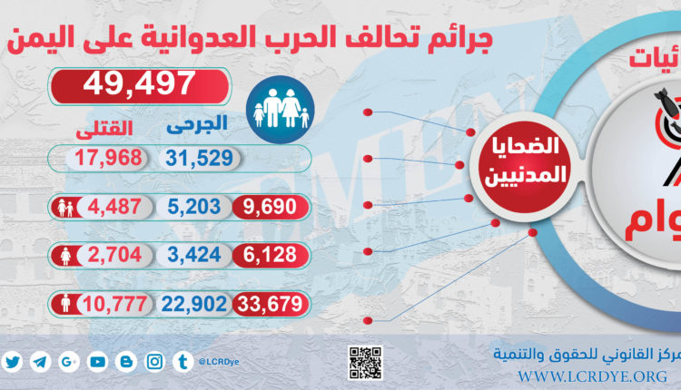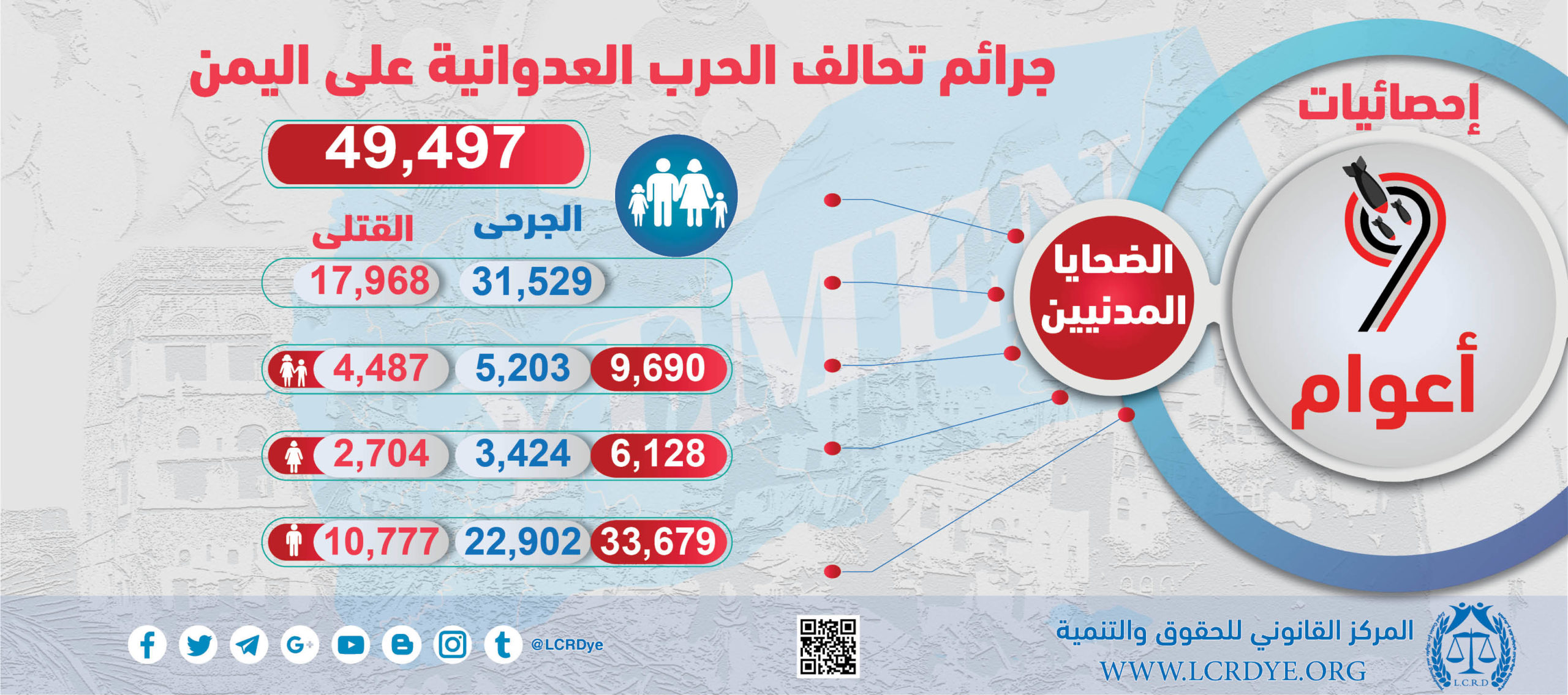 احصائيات الضحايا المدنيين نتيجة الغارات التي تشنها قوات التحالف السعودي خلال 9 أعوام منذ بداية العدوان على اليمن On مارس 25, 2024 Share FacebookTwitterGoogle+ReddItWhatsAppPinterestالبريد الإلكتروني