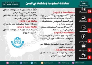 الرصد الحقوقي اليومي لاانتهاكات السعودية وتحالفها ضد المدنيين في اليمن ليوم الاحد الموافق 11سبتمبر 2017م