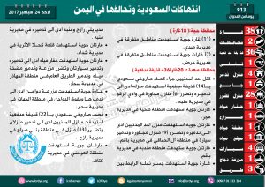 الرصد الحقوقي اليومي لاانتهاكات السعودية وتحالفها ضد المدنيين في اليمن ليوم الاحد الموافق 24سبتمبر 2017م