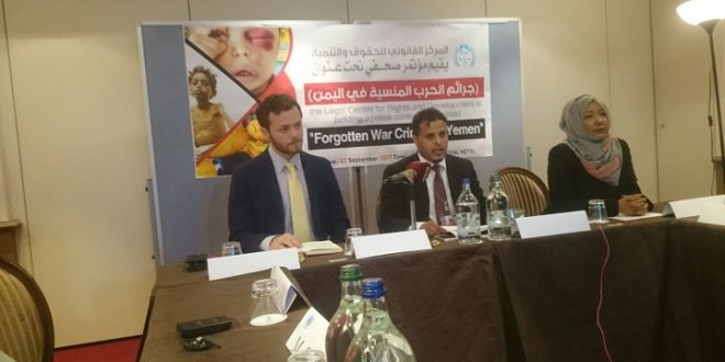 واختتم المؤتمر الصحفي ببيان المركز القانوني للحقوق والتنمية الذي أدان جرائم التحالف السعودي على اليمن التي ارتكبها لأكثر من عامين ونصف وطالب البيان بتشكيل لجنه تحقيق دولية.