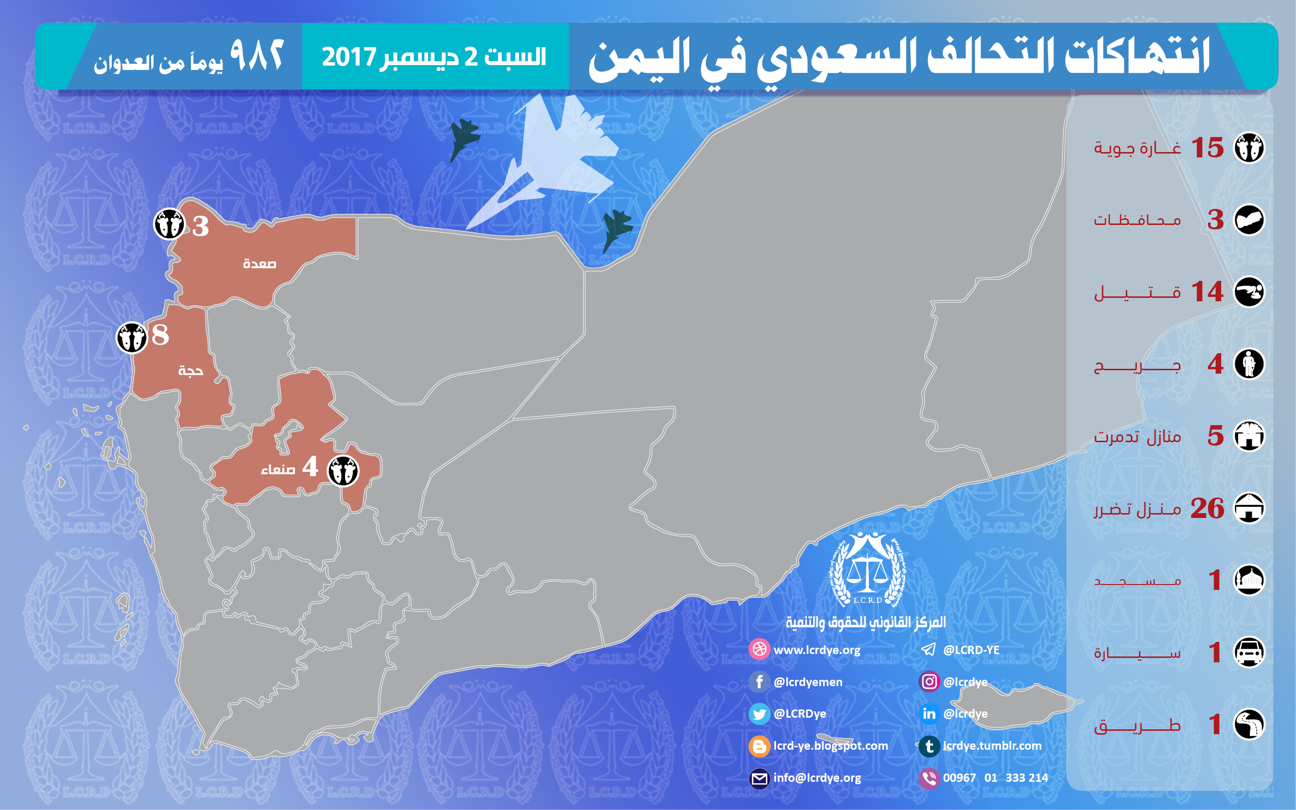 رصد انتهاكات التحالف السعودي في اليمن 2 ديسمبر 2017