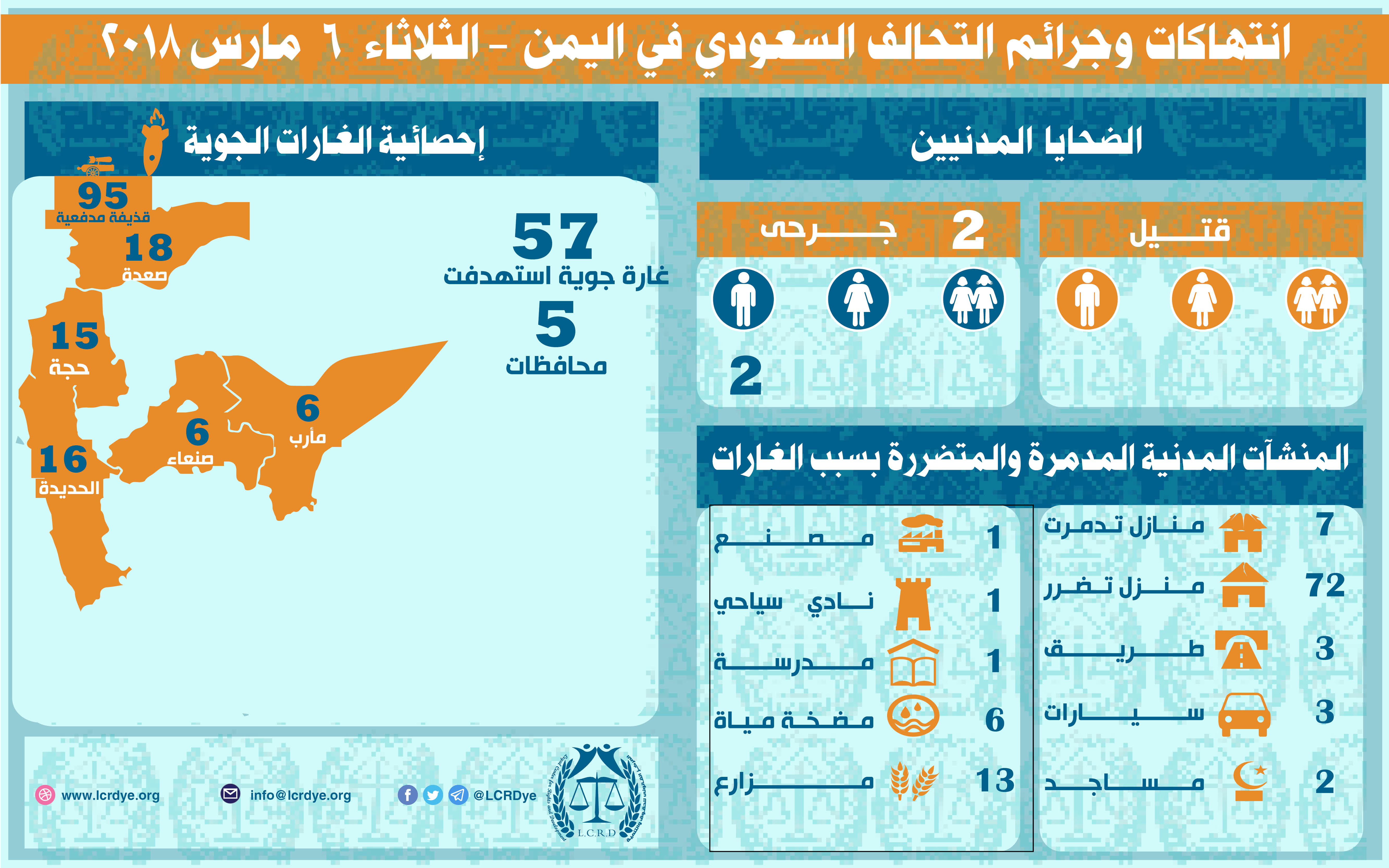 انتهاكات التحالف السعودي في اليمن 6 مارس 2018 Last updated مارس 7, 2018 للتحميل https://www.lcrdye.org/wp-content/uploads/2018/03/6-3-2018.pdf التحالف السعوديالمركز القانوني للحقوق والتنميةاليمن Share FacebookTwitterGoogle+ReddItWhatsAppPinterestالبريد الإلكتروني