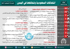 الرصدالحقوقي لجرائم السعودية وتحالفها في اليمن ليوم السبت 12 اغسطس2017