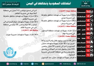 الرصد الحقوقي اليومي لاانتهاكات السعودية وتحالفها ضد المدنيين في اليمن ليوم الاربعاء الموافق 20سبتمبر 2017م
