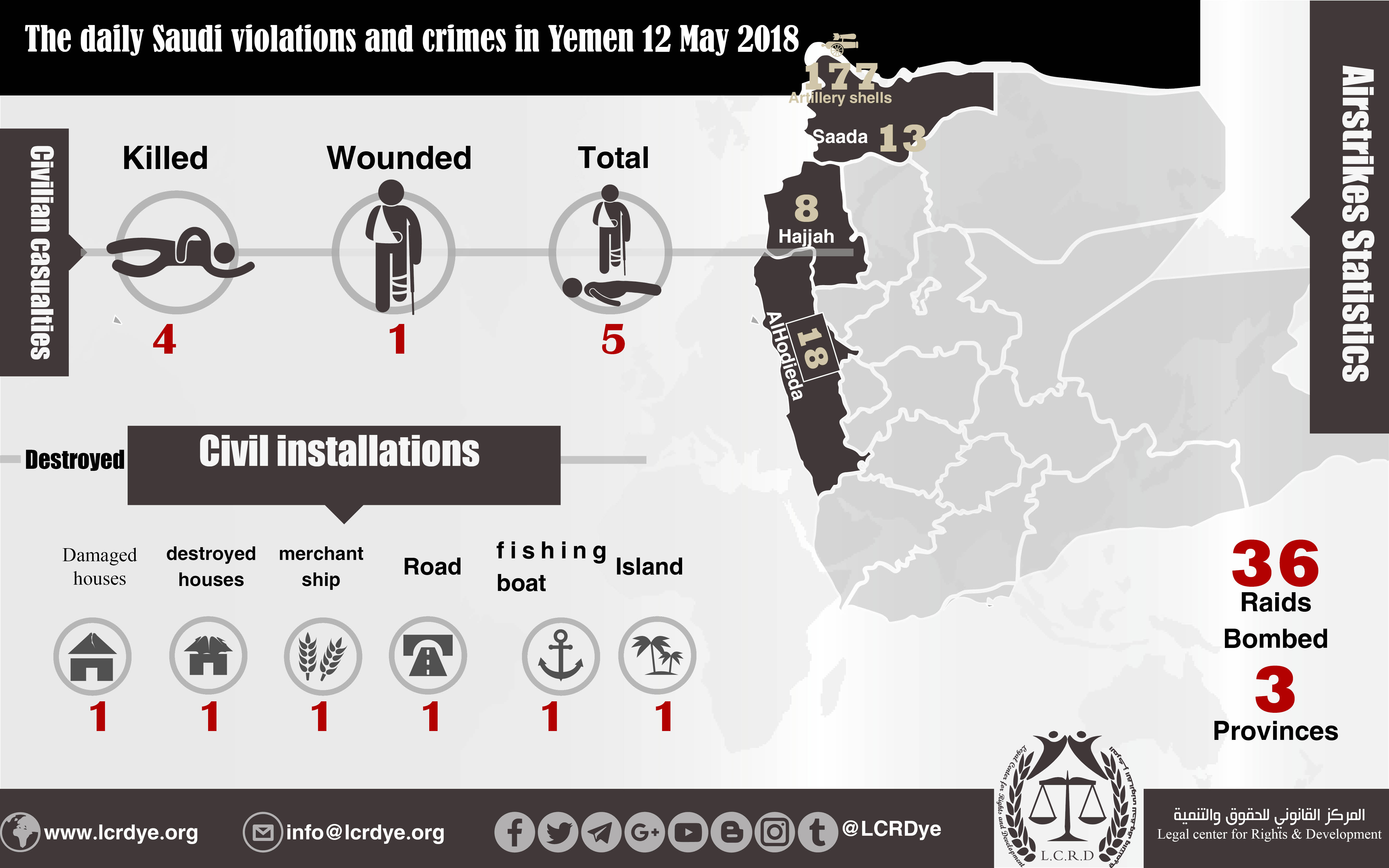 The Daily Violation and Crimes observation Report that are committed by the Saudi Arabia and its collation in 12-5-2018 Share For download https://www.lcrdye.org/wp-content/uploads/2018/05/12-May-2018.pdf legal center for right and developmentSaudi coalition CrimesViolation war lawsYemen Share FacebookTwitterGoogle+ReddItWhatsAppPinterestEmail