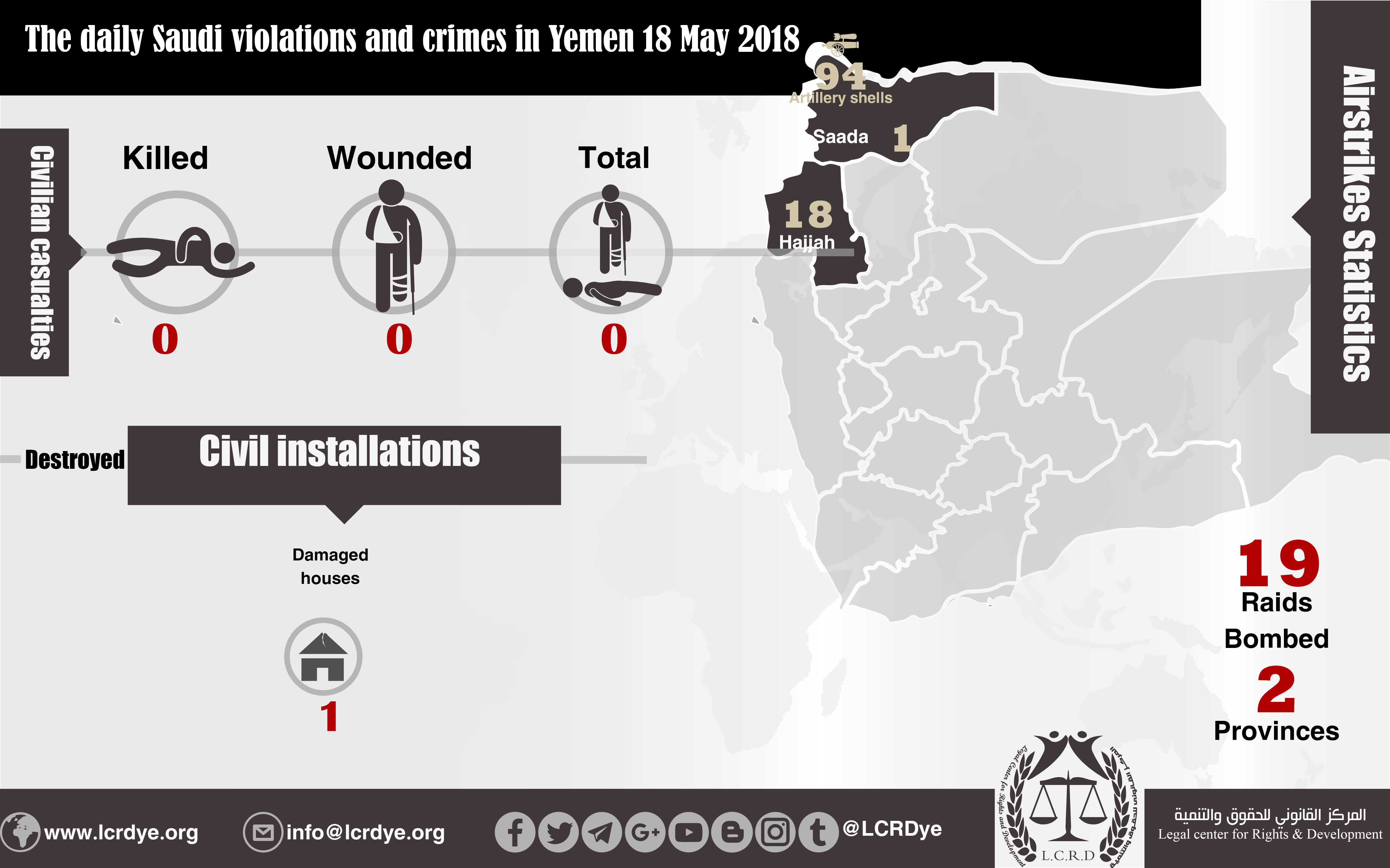 The Daily Violation and Crimes observation Report that are committed by the Saudi Arabia and its collation in 18-5-2018 Share For download https://www.lcrdye.org/wp-content/uploads/2018/05/18-May-2018.pdf legal center for right and developmentSaudi coalition CrimesViolation war lawsYemen Share FacebookTwitterGoogle+ReddItWhatsAppPinterestEmail