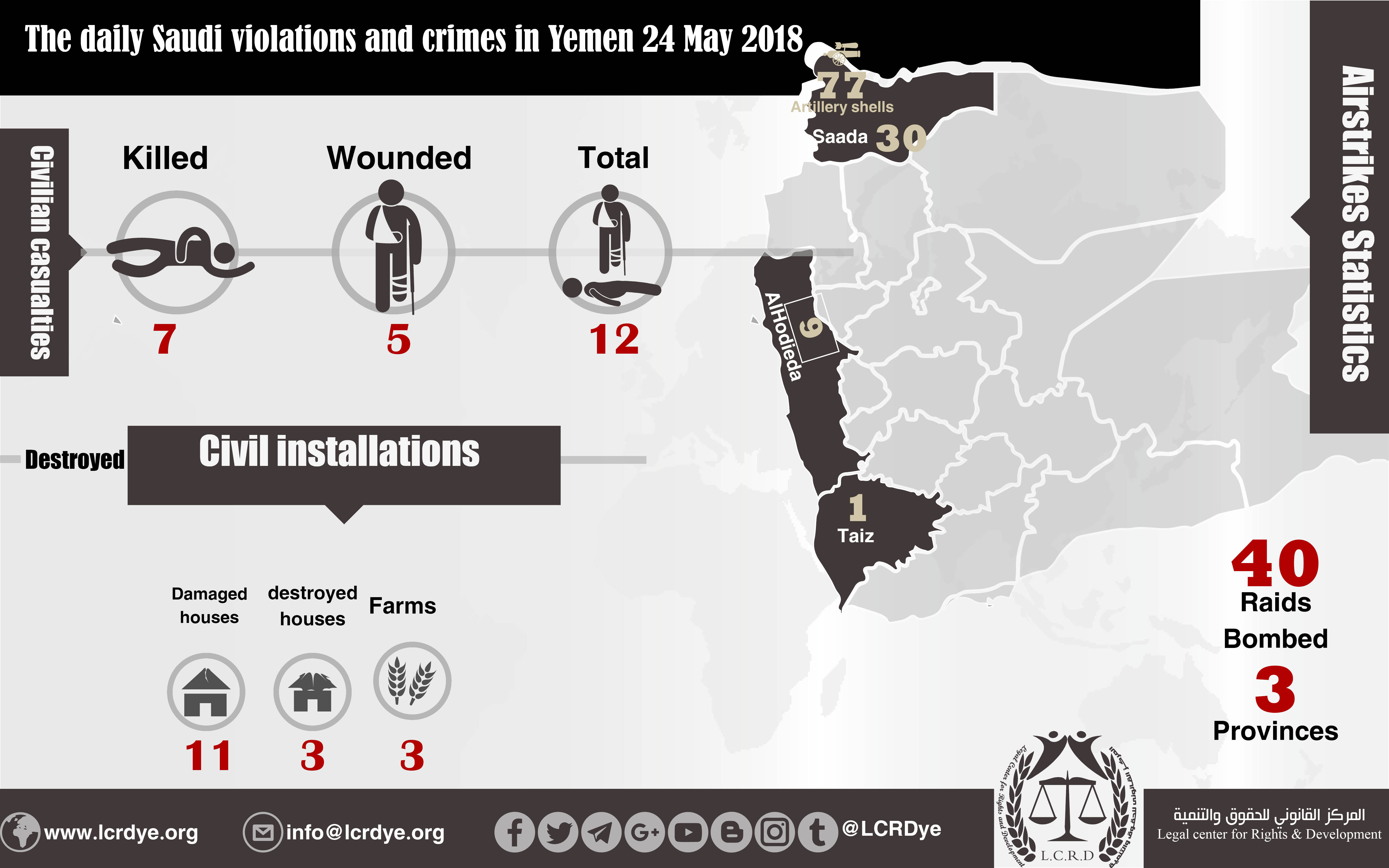 The Daily Violation and Crimes observation Report that are committed by the Saudi Arabia and its collation in 24-5-2018 Share For download https://www.lcrdye.org/wp-content/uploads/2018/05/24-May-2018.pdf legal center for right and developmentSaudi coalition CrimesYemen Share FacebookTwitterGoogle+ReddItWhatsAppPinterestEmail